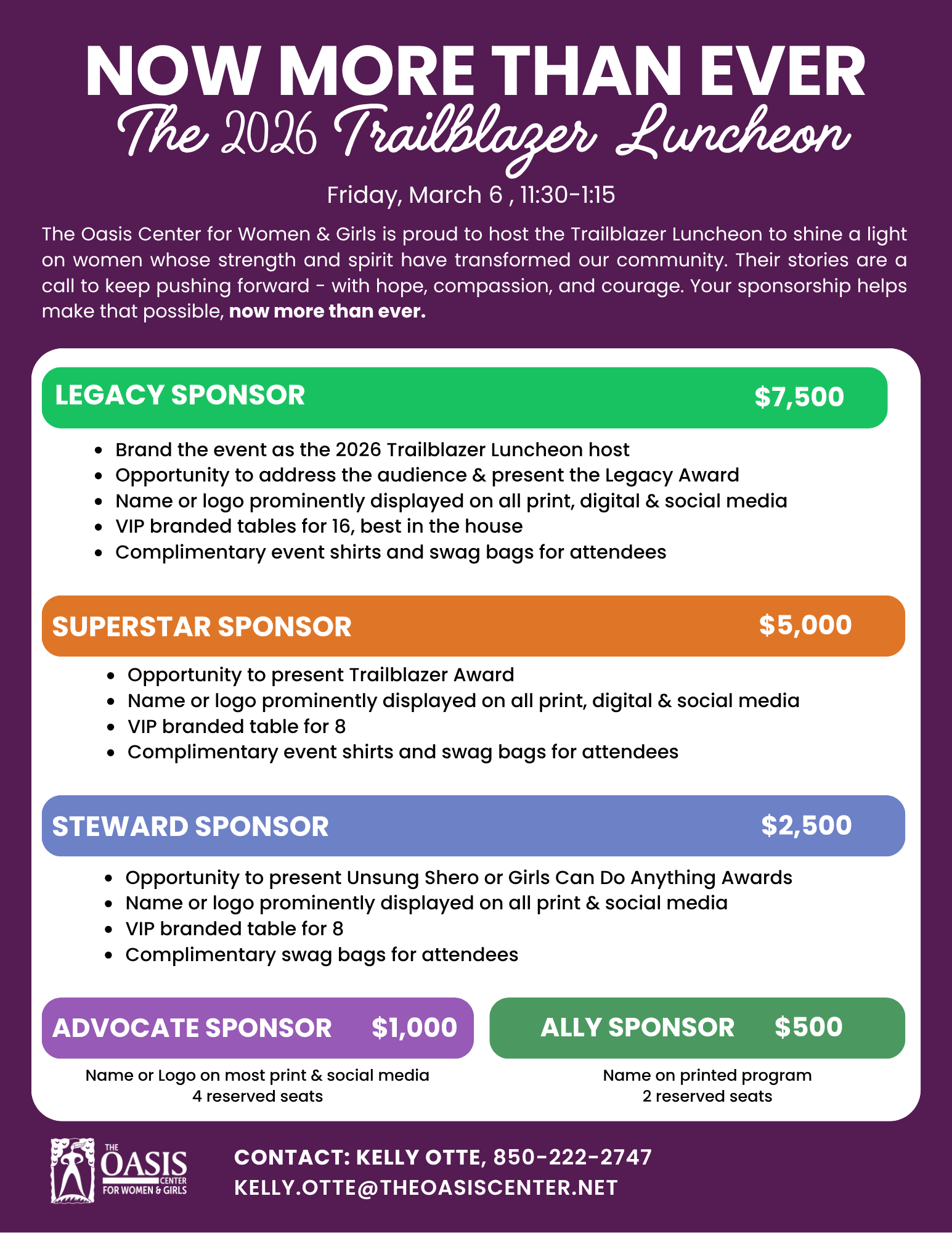 Sponsors are vital to Oasis because you make realization of our mission possible. Through the generosity of sponsors and donors, we’re able to provide essential services, and life-changing programs for moms raising children on their own, their children, and girls ages 12-18 in our community. Your support shows our participants that they are valued, seen, and not alone – and it strengthens our ability to be here when they need us. We are grateful to you for your support, now more than ever.